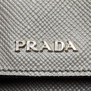 The Prada Saffiano Lux Leather Double Handle Small Tote Bag 1BG775 is one stunning piece. This spacious tote has the capability to hold all your daily essentials and more. It is made of gorgeous grey stamped Saffiano leather with two rolled top handles, an adjustable long strap, and a spacious two compartment interior. The interior is lined with green smooth leather and has a center snap pocket. Each side of the bag is expandable with snaps. A silvertone Prada triangle logo completes the look. We love the structured shape of this trendy but classic bag.