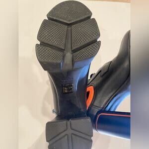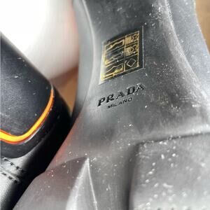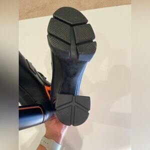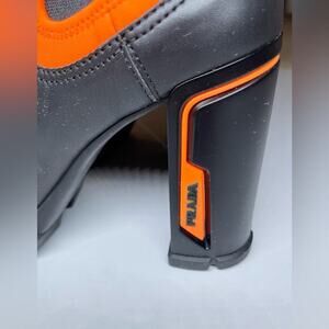 Prada Neon Orange Black Leather Neoprene Lace Up Chelsea Ankle Boot EU 41.5