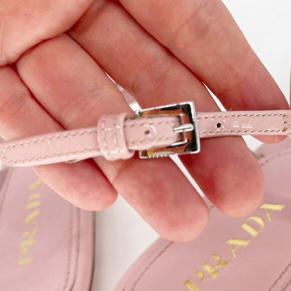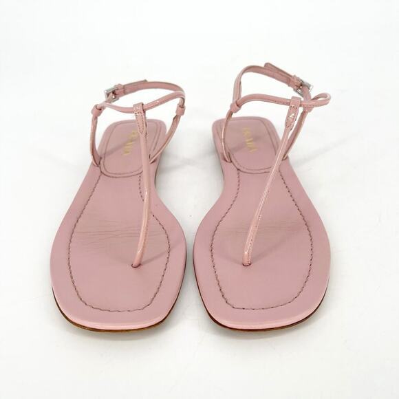 Prada Pale Pink Patent Leather T Strap Thong Strappy Flat Sandal size IT 37