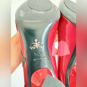 Prada Red Patent Leather Heart Appliquè Pointed Toe Heart Pumps EU 37.5