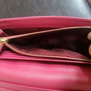 Elevate your style with this elegant pink leather bag from Prada. Perfect for any occasion, this chic accessory adds a touch of luxury to your ensemble. Some discoloration on side edges, authentic, inside very clean.. Greta deal for a Prada.