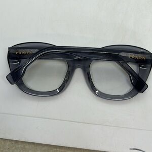 Elegant Prada glasses with a chic translucent gray frame. Perfect for a sophisticated look.
