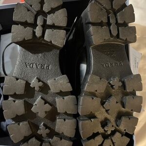 Prada women’s black Monolith leather moto combat boots 7.5 with pouch EUC