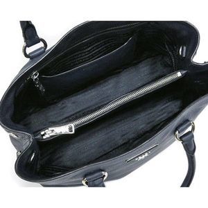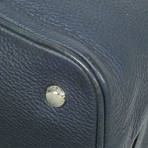 Prada Saffiano Lux 2 Way Handbag Shoulder Handbag Silver Hardware Navy