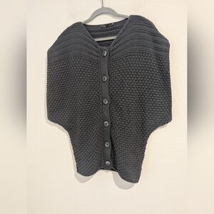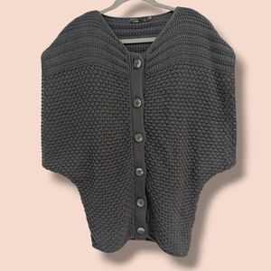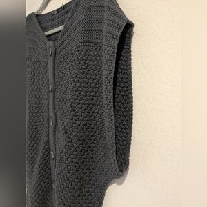 Prana Grey Chunky Open Knit 100% Organic Cotton Button-Up Estee Sweater Vest Loose Relaxed.