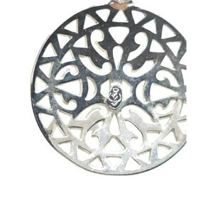 Premier Designs Openwork Medallion Pendant Leather Cord Necklace Silver Tone