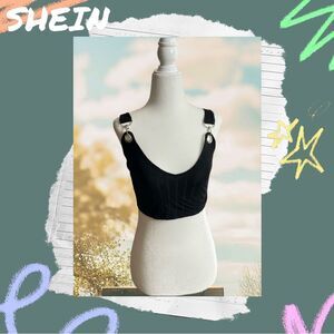 💝 Preowned Shein Black Crop Top Tank Top Shirt - Extra Small