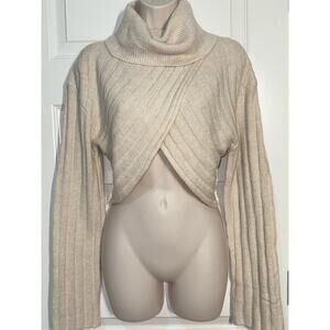 Oatmeal luxe knit wide rib cross back crop, turtleneck