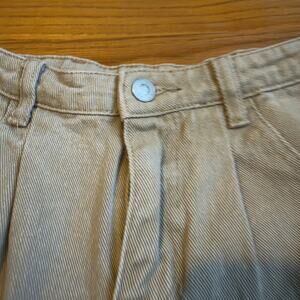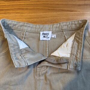 Princess Polly Khaki Denim Shorts High Waist Pleated Pockets Zip Size 2