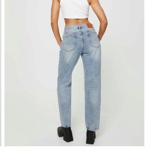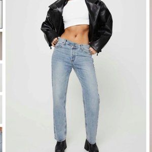 Princess Polly Mid Rise Holly Asymmetric Straight Leg Jean Light Wash Denim