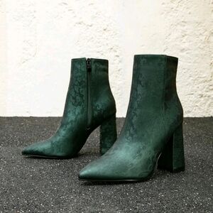 Print Side Zipper High Heel Short Boots For Women,Pointed Toe Chunky Heel Boots