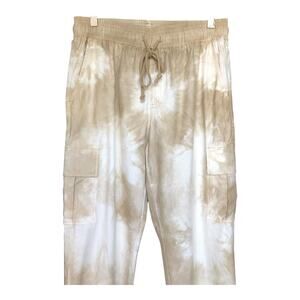 Promesa Beige White Tie Dye Cargo Jogger Pants Drawstring Women's Size Small