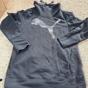 Cozy dark gray sweatshirt. Features iconic Puma logo. Perfect for casual wear.
