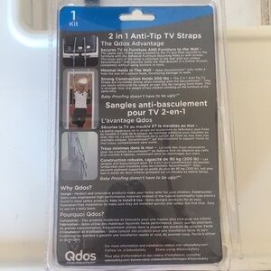 Brand new in box Qdos 2 in 1 Anti-Tip TV Straps 1 Kit - 2 straps,SecureHooks Anchor Holds 200 lbs