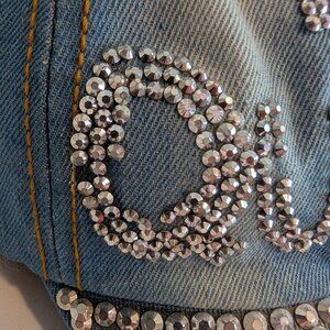 QUEEN Studded Blue Jean Distressed Baseball Cap Style Hat