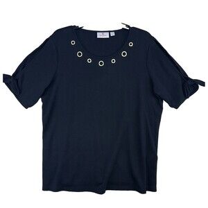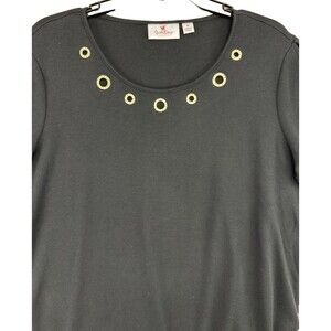 Quacker Factory Blouse Women 1X Black Rhinestone Gold Grommet Knot Open Cuff Top