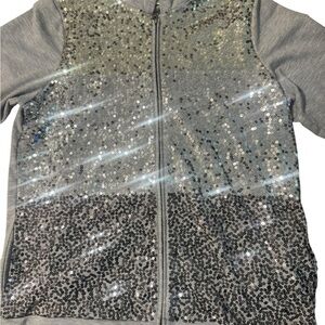 Quacker Factory Zip Up Sparkle Hoodie Sweatshirt Jacket Gray Sequin Size Large