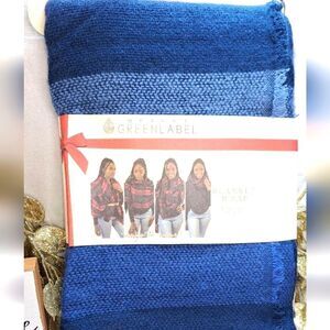 Quagga Blanket Wrap Scarf Navy Buffalo Checked Green Label