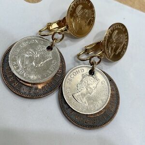 Queen Elizabeth II Coin Clip On Earrings—Gorgeous!! Peruvian Coin on Top—EUC