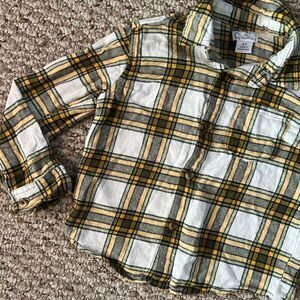 Quiltex Aize 4T off white and green plaid long sleeve toddler shirt