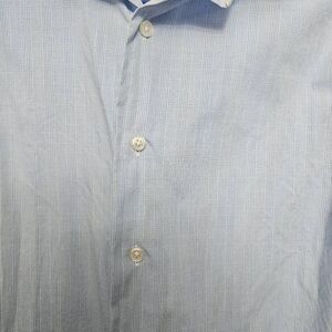 Excellent pre-loved clean condition R13 Shirtdress blue and white stripes.size Large. No callouts. Measurements are provided with photos.