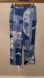 Elegant pants with a blue and white pattern. Designed by Rachel Comey.