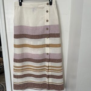 RACHEL ZOE Striped Linen Skirt - Cream, Brown, and Tan 100%Linen Size M