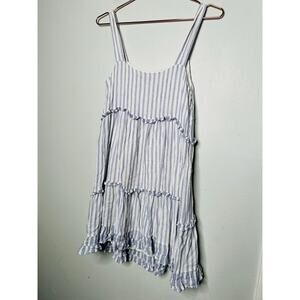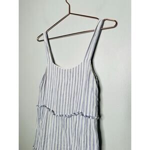 RAILS Blue White Scoop Neck Linen Blend Ruffled Tiers Sandy A-Line Dress Size S