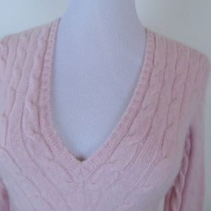 RALPH LAUREN BLACK LABEL CASHMERE pink CABLE v neck Sweater M