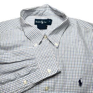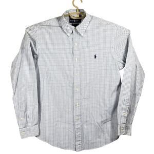 RALPH LAUREN Custom Fit Shirt Men’s Large Blue White Check Business Preppy