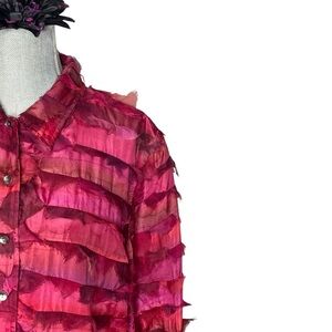 REAR VINTAGE Chico’s Design Textured 100% Silk Button Front Blouse Pink Red Size 2 (M/L)