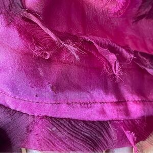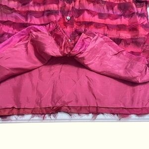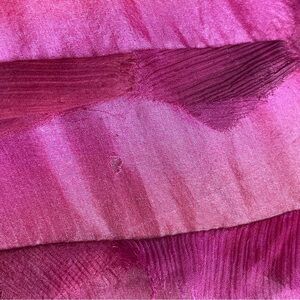 Elevate your wardrobe with this stunning Chico’s Design 100% Silk Blouse. Featuring a unique horizontal textured ribbon detail in rich shades of pink, red, and burgundy, this blouse is a true statement piece. The button front closure, collared neckline, and fully lined interior provide both style and comfort.