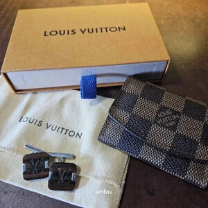 Louis Vuitton Wooden Cufflinks with Ebene Damier Case, dust bag and box in EUC.