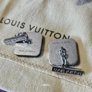 RARE Louis Vuitton Wooden Cufflinks with Ebene Damier Case, dust bag and box