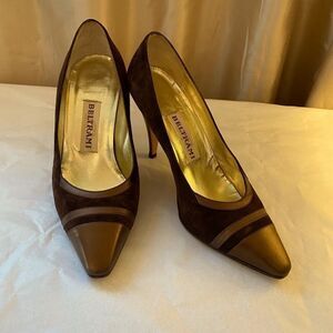 RARE Beltrami vintage cap toe brown suede pumps in size 5 excellent condition! Brown suede and antique browsed brown leather. Made in Italy.