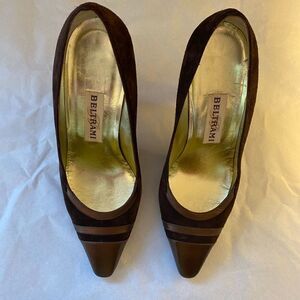RARE Beltrami vintage cap toe chocolate suede pumps size 5 excellent condition