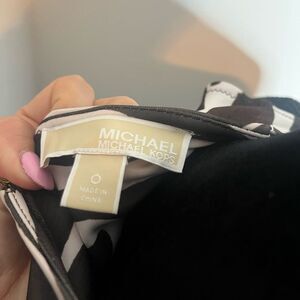 Keywords: Michael Kors, fit and flare, zebra print, sleeveless, knee-length, casual dress, women's fashion, round neck, zip closure, pre-owned dress, black dress, stretch fabric, stylish dress, evening wear, brunch outfit.