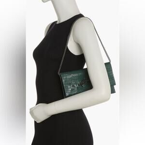 REBECCA MINKOFF LOU CROC EMBOSSED CLUTCH BOTTLE GREEN W GUNMETAL HARDWARE NWT