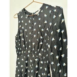 REBECCA TAYLOR Ghost Flower Floral 100% Silk Mini Dress in size 4 is a delicate and luxurious piece that combines elegance with a whimsical floral design. Crafted from 100% silk, the dress has a soft, flowing feel, offering a lightweight and breathable fit. The "Ghost Flower" floral print features soft, ethereal blooms that add a romantic and feminine touch to the overall look. With its mini length, the dress is perfect for showing off the legs while maintaining a sophisticated silhouette.