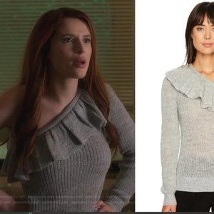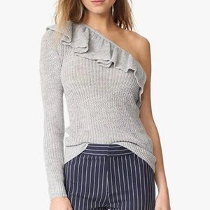 REBECCA TAYLOR One Shoulder Alpaca Ruffle Knit Pullover Sweater Grey/gray Size Medium
