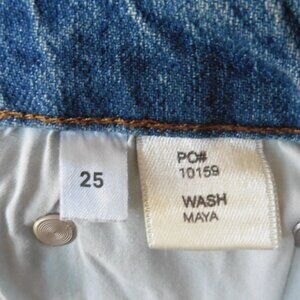 Size 25, approx. 26" waist with a 10" rise and a 29" inseam.