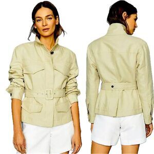 REISS Eden Khaki Green Cotton-Blend Utility Jacket Size 2