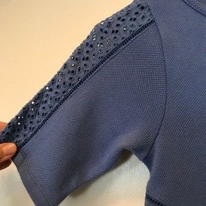 REISS Light Blue Cotton Mixed Knit Eyelet Bodycon Dress size UK6 EU34 US2