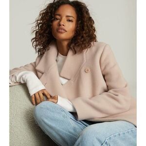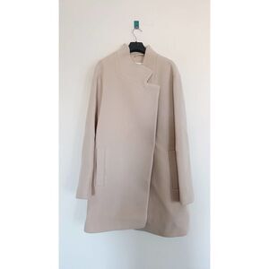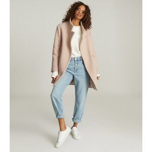 This coat is cut to a seasonless slim mid-length silhouette with a concealed buttoning for a minimalist look. The stand-up collar frames the face and protects from the cold, while its soft-pink colour is elegantly feminine.