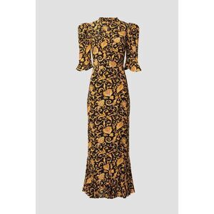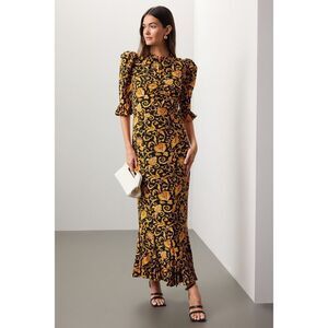 We are in love with the vintage print on this fit-and-flare midi dress by RHODE. Puff shoulders and a flirty flared skirt create the perfect silouette to stand out at your next cocktail party.