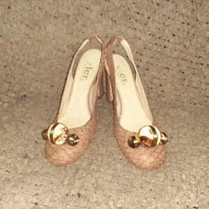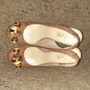 The brown leather upper is decorated with beaded reptile print, giving it a unique and trendy look.