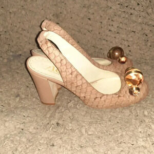 RICHARD TYLER-Vintage-Riesling Reptile Beaded Brown High Heel-SZ6.5/7-Excellent