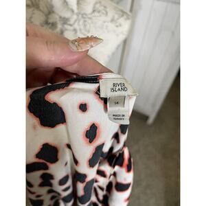 RIVER ISLAND Bright Pink Leopard Print Blouse Button Down Size US 10 UK 14