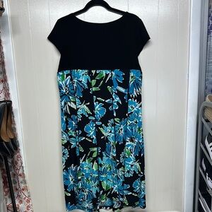 Stylish R&K midi dress with vibrant blue floral pattern. Black base enhances the design. Perfect for any occasion. See all photos as they are part of description