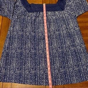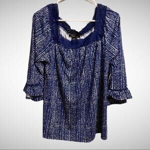 ROBERT Louis Blue and White Boho Bell Sleeve Top Size Medium